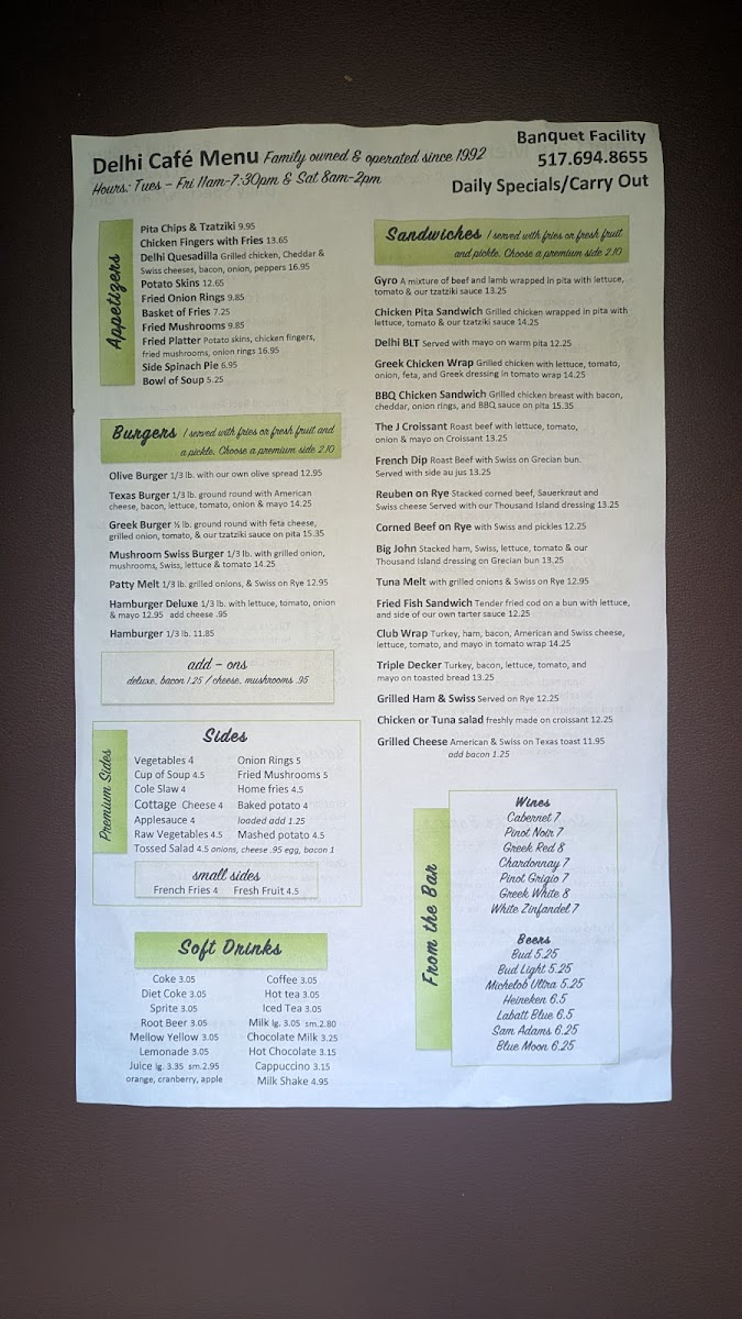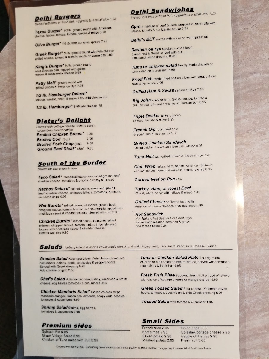 The menu at Delhi Cafe presents a welcoming blend of comforting classics and hearty Mediterranean flavors, reflecting its unique position as both a cozy diner and a Greek restaurant. Guests can expect casual, satisfying meals that fit perfectly into a relaxed breakfast, lunch, or dinner setting.